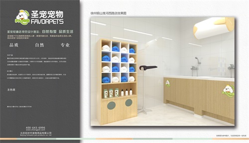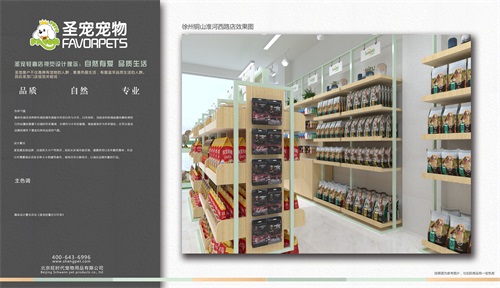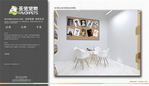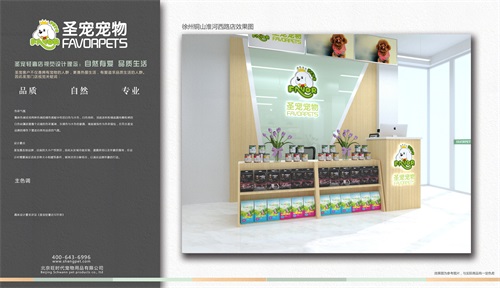 圣宠轻奢店视觉设计理念:自然有爱,品质生活。圣宠客户不仅是拥有宠物的人群,更是热爱生活,有爱追求品质生活的人群,因此圣宠总部为徐州淮河西路店设计装修效果图,以下就是徐州淮河西路店装修设计图: