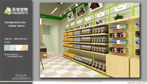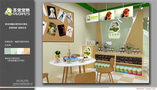 圣宠轻奢店视觉设计理念:自然有爱,品质生活。圣宠客户不仅是拥有宠物的人群,更是热爱生活,有爱追求品质生活的人群,因此圣宠总部为福建百捷学府店设计装修效果图,以下就是福建百捷学府店装修设计图: