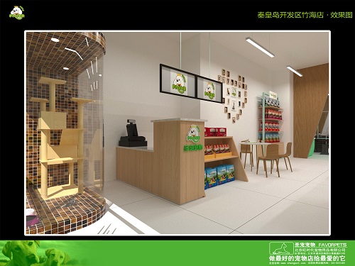 后来在网上查询一些宠物店加盟品牌,了解到了圣宠宠物,加盟嘛,当然要选择有实力的。后来就到圣宠宠物总部考察,看到总部的培训机构和强大的团队支撑,正规严谨,十多年的大品牌,值得每一位创业者的信赖,于是决定签约加盟了。以下就是圣宠宠物秦皇岛开发区竹海店的装修设计图: