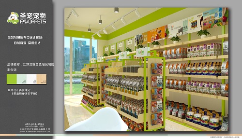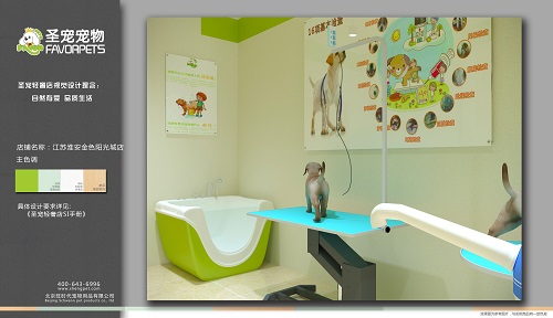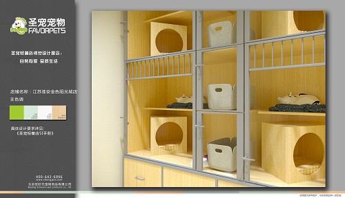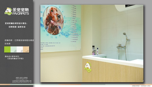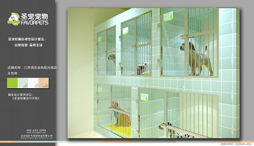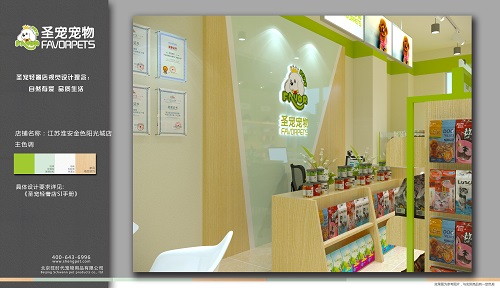 现在金色阳光城店的店主已接受完了圣宠总部为其安排的全面系统的培训,并且运营部已协助郭女士选址成功,圣宠专业的设计团队也为其制作了相应的装修设计效果图,以下是圣宠宠物淮安金色阳光城店装修效果图: