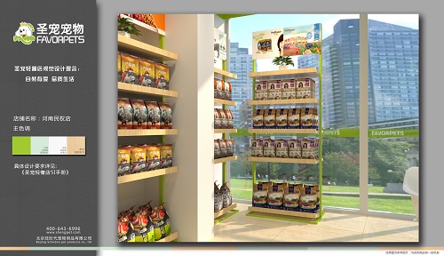 圣宠智享店店视觉设计理念:自然有爱,品质生活。圣宠客户不仅是拥有宠物的人群,更是热爱生活,有爱追求品质生活的人群,因此圣宠总部为河南民权店设计装修效果图,以下就是圣宠宠物河南民权店: