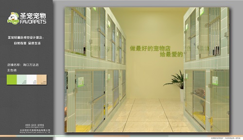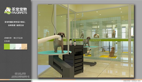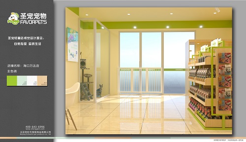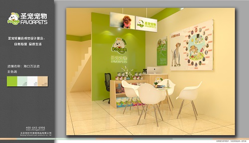 圣宠宠物在宣传推广这方面做的很不错,从前期上门选址、技术培训到后期的店铺运营宣传推广,圣宠都会提供一站式的服务,以下就是圣宠宠物海口市万达店的装修设计图;