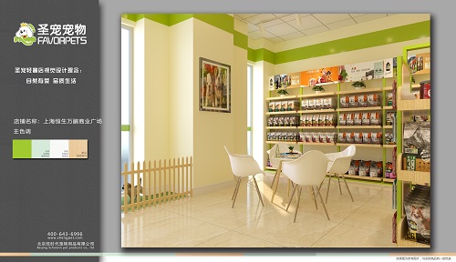 圣宠经理在经过测量之后将店铺的各项数据移交给了圣宠专业的设计部门,为其设计店铺的装修效果图,保证圣宠宠物上海浦东新区恒生万鹂商业广场店能够合理充分的利用每一寸空间,以下就是圣宠宠物上海浦东新区恒生万鹂商业广场店的装修设计图:
