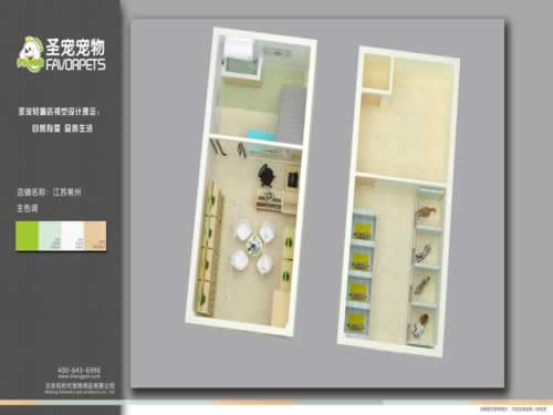 现在常州市的孙先生已接受完了圣宠总部为其安排的全面系统的培训,并且运营部已协助孙先生选址成功,圣宠专业的设计团队也为其制作了相应的装修设计效果图,以下是圣宠宠物(劳动西路店)宠物店装修效果图: