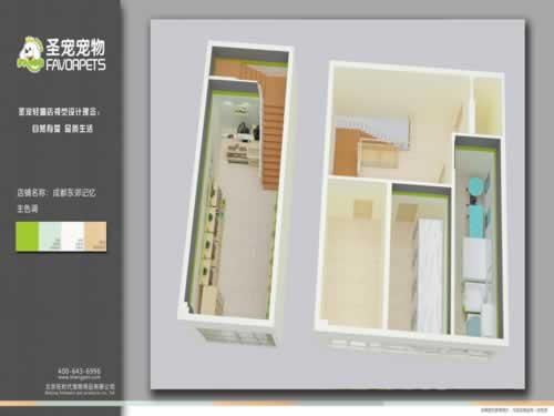 现在成都市的董先生已接受完了圣宠总部为其安排的全面系统的培训,并且运营部已协助董先生选址成功,圣宠专业的设计团队也为其制作了相应的装修设计效果图,以下是圣宠宠物(东郊记忆店)宠物店装修效果图:
