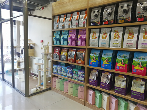 担心毛孩子挑食?来店里,可以看到琳琅满目的食品和品质健康的视觉冲击,和店铺的陈列息息相关,展示内容不仅是产品,也搭配木质原料,描述产品的天然安全!