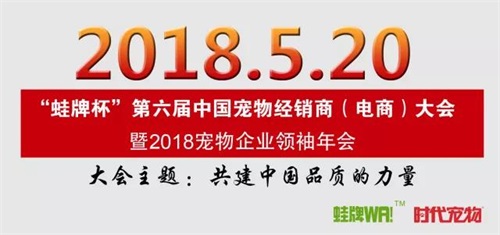 “蛙牌杯”第6届全国宠物产业经销商(电商)大会,是由广东省宠物美容协会、时代宠物全媒体联合中国农业国际合作促进会宠物产业委员会主办的规模最大的全国性渠道大会,于2018年5月20日在武汉市盛大开幕,本会由蛙牌宠物(湖北)股份有限公司全程冠名。