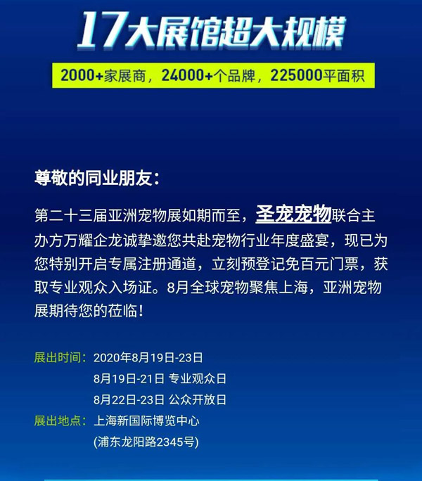 圣宠宠物邀您看亚展,免费预约登记参观 圣宠宠物邀您看亚展,免费预约登记参观[详情]