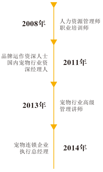 自2006年涉足宠物行业,一直是宠物连锁的传奇人物,建立2个宠物连锁品牌,开创了宠物连锁的先河。宠物学校、店铺、犬舍全部涉猎,用数十年的经验总结了连锁品牌的经营标准及体系,并植入到宠物连锁品牌之中,是从连锁的角度经营宠物店铺的第一人,是一个实战专家。