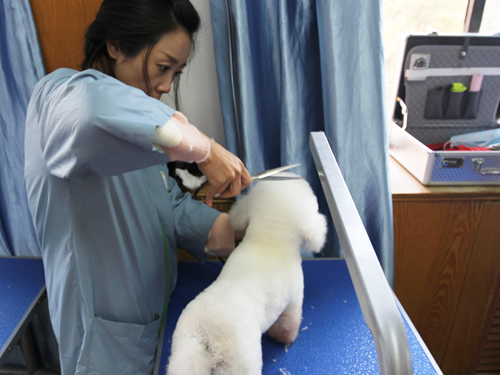 圣宠宠物美容学校学习内容主要包括:犬只洗澡、护理、染色、药浴、spa以及10几个犬种的美容课程。(贵宾,比熊,泰迪,雪纳瑞,西高地,巨贵,金毛,萨摩,博美等)标准装束、流行装束、快速修剪法等等的美容学习。