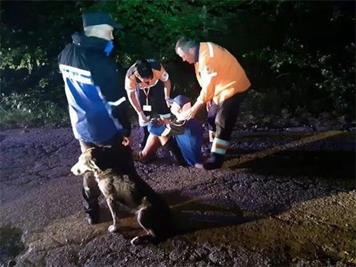 结果车子不幸坠入山间,母亲遇难,狗狗和她都被甩出车外。