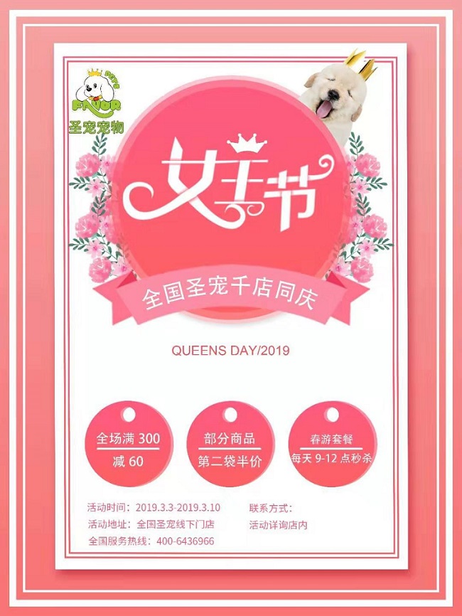 定了!3月3日-10日,圣宠「百城千店」联动优惠狂欢“女王节”! 花香渐浓,微风渐暖 3月8日女王节 悄然而至为迎接“三八”女王节的到来圣宠宠物精心部署以女王节购物...[详情]