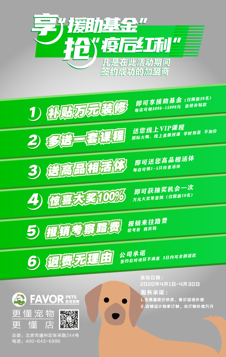 享“援助基金” 抢“疫后红利” 补贴装修万元;报销考察路费;多送一套课程;抽惊喜100%中奖;送高品相活体;退费无理由。