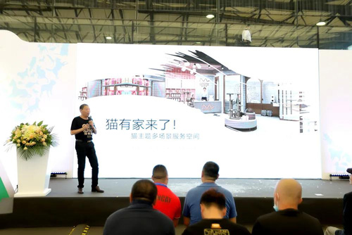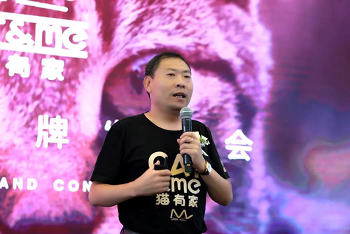 圣宠董事长阎金胜先生对到来的嘉宾表示诚挚欢迎,并为“猫有家”做品牌发布演讲。