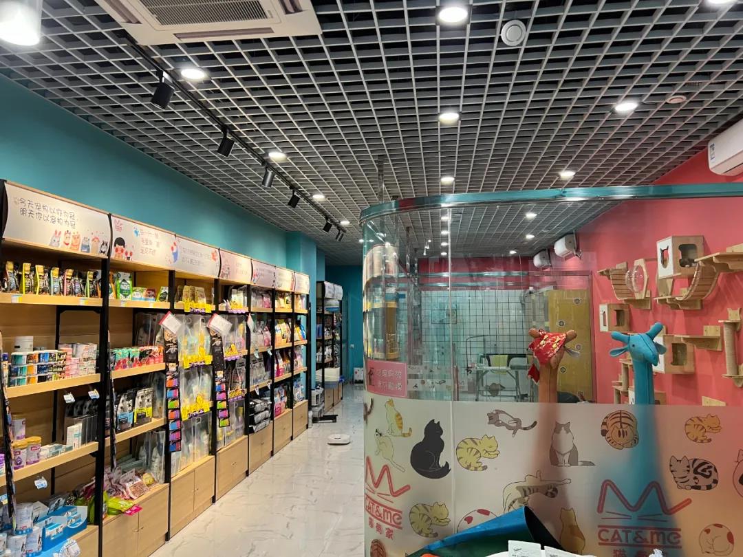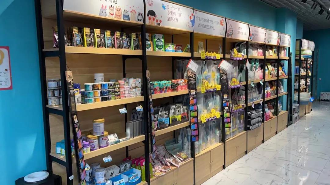 店内产品排列摆放排列整齐,让人一目了然,猫粮、猫罐头、猫砂、猫厕所、猫抓板、猫衣服等应有尽有,且价格便宜实惠。